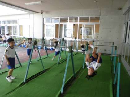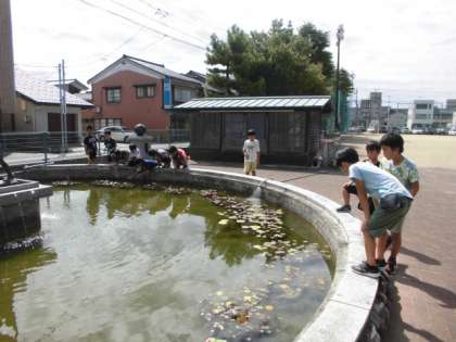いきいきタイムは、思い思いの活動を楽しんでいます。中庭の鉄棒、立志の庭にある池は子供たちに人気のスポットです。