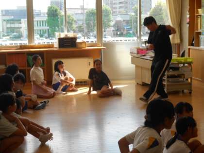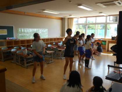 今日は4〜6年生のクラブ活動の日です。ダンスクラブでは、先生のかっこいい見本を見て、盛り上がっていました。子供たちも真剣に練習していました。