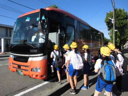 6年生が富山市チャレンジ陸上記録会へ出発しました。練習の成果を発揮し、全力を出し切ってくださいね!