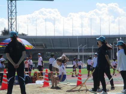雲一つ無い快晴の中、チャレンジ陸上記録会が行われました。