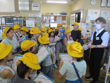 社会科の校外学習でスーパーマーケットに歩いて見学に行きました。授業で、スーパーマーケットの学習を行い、お店の人の工夫や気を付けていることをインタビューしました。子供たちは、店長さんの話を真剣な表情でしっかり聞きながらメモしていました。今後の学習に生かしていきます。