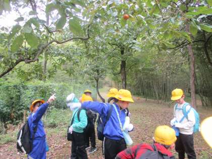 森の中を班のみんなと歩いて、地図を頼りにしながら木の名前とその木の特徴を記入していく「森の木オリエンテーリング」。森の中とあって、分かりづらい道を歩いていくと「あっ、何か書いてあるよ」と目印を発見。最後は、全班、全ての目印を発見し、ゴールしました。正解数と時間で順位が決まり、その後、表彰式が行われました。