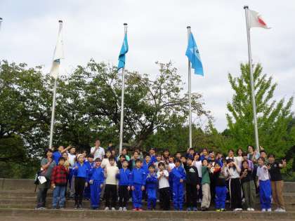 オリエンテーリングで、全班がゴールをした後、全体写真を撮りました。達成感に満ち、疲れも吹き飛んでいるようです。