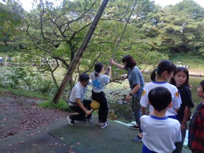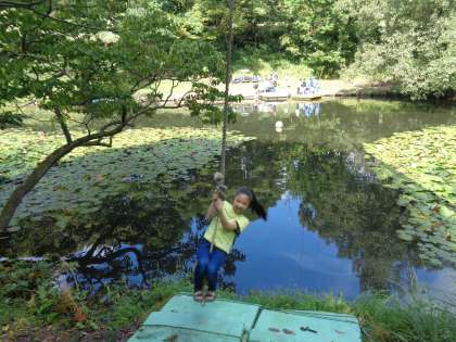 スリル満点のターザンロープは、最初は一往復しかできなかった子供たちも、慣れてくると何回も挑戦していました。落ちないようにしっかりと縄をつかみ、体全体に風を感じました。大自然の壮大さを体感した瞬間でした。