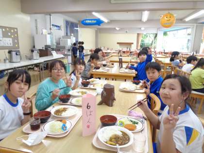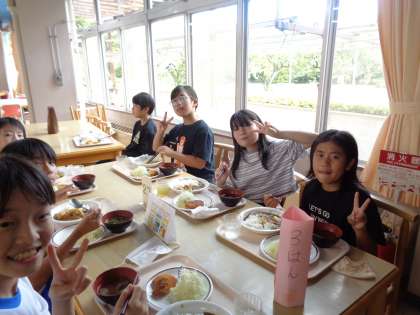 今回は朝食、昼食、夕食と、食堂にて三回食事をとりました。班のみんなでそろって、いただきます。食後は、片付けもしっかり行いました。
