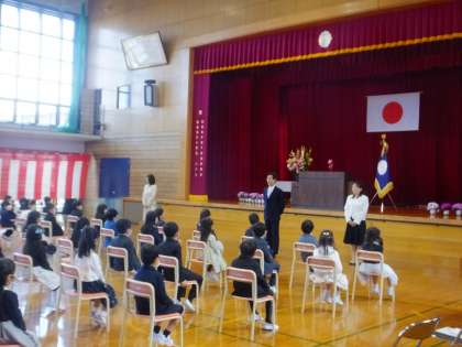 4月7日(火)に、令和2年度入学式がありました。今年度は、55名の子供たちが西田地方小学校に入学しました。校長先生は、「ありがとう」「ごめんなさい」の言葉を大切にしてほしいと話されました。子供たちは、話をしっかり聞き、「はい」と元気よく答えていました。