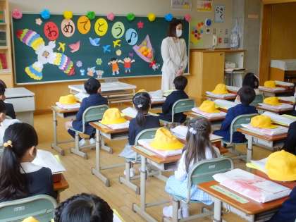 入学式の後、新1年生の子供たちは、教室に戻り、担任の先生と一緒に過ごしました。子供たちは、先生から名前を呼ばれると、大きな声で「はい」と返事をしていました。