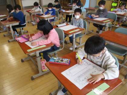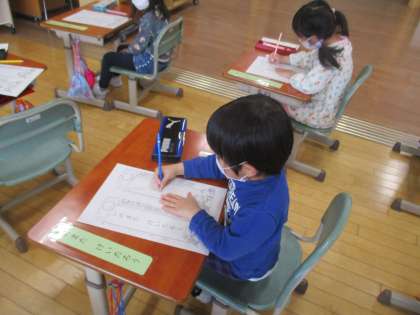 国語の時間に、自分の名前を書く練習をしました。お手本を見ながら、ゆっくり丁寧に書くことができました。自宅学習でも練習して、学校が再開した頃にはさらに上手に書けるようになっているといいですね。
