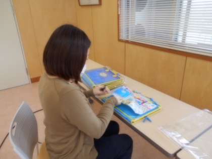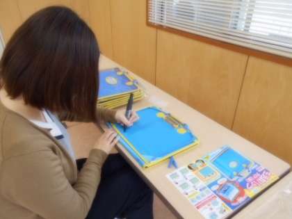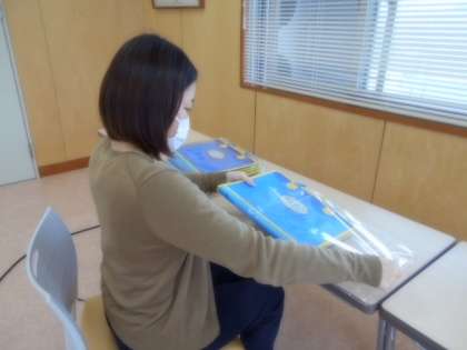 主に生活科の学習で使うたんけんバッグに、みんなの名前を書きました。学校が始まったら、このバッグを持って、みんなで西田地方小学校の中をたんけんしましょうね。