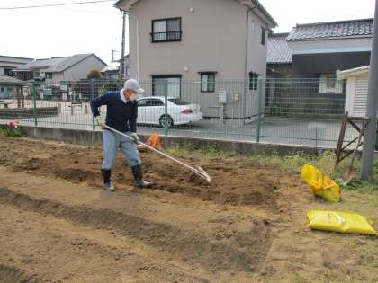 用務員さんが、一生懸命に学習用の畑の準備をしてくださっています。