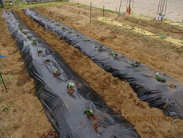 生活科「やさいをそだてよう」の学習として先生たちがサツマイモの苗を植えました。