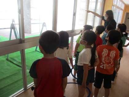 「何があるのかな?」「これは、何だろう?」と、興味津々で探検しました。明日の2階探検も楽しみですね。