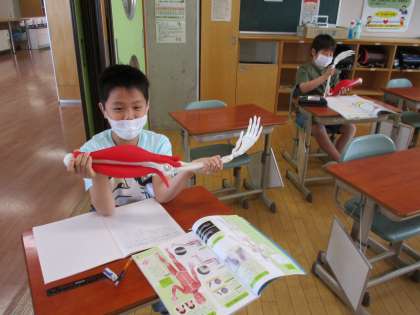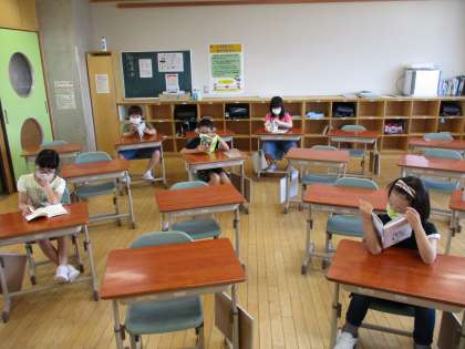 久しぶりの登校にも関わらず、意欲的に学習に取り組む4年生。新しい生活様式を心がけながら、楽しく学習を進める姿がとてもたのもしいです。