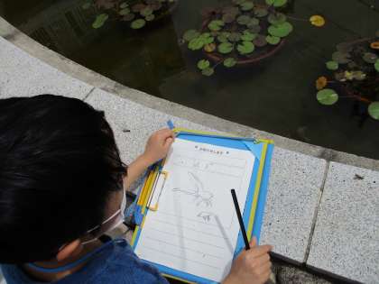 生活科の学習で、学校にどんな生きものがいるのかを探しました。ヤゴからトンボになるところを実際に観察することができました。西田地方の池には、たくさんの生きものがいます。ツバメの巣の様子を、毎日観察している子供たちもいます。