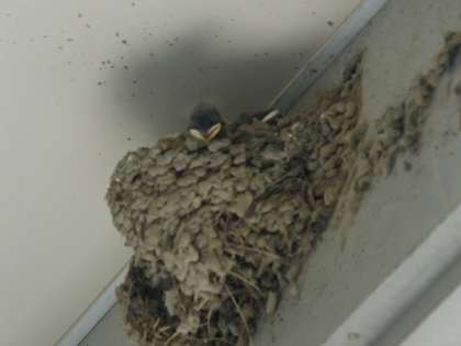 学校には、2つのツバメの巣があります。学校の西側の門の近くと校長室の近くです。それぞれの巣で3羽の子ツバメを見ることができました。校長室からは、親ツバメがえさを運んできたときに鳴いている子ツバメの声が聞こえてきます。学校の子供たちも、静かに、そっと子ツバメたちの成長を見守っています。