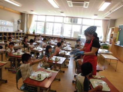 6月10日から、簡易給食が始まりました。子供たちは、久しぶりの給食を楽しみにしていました。給食の時間になると、手洗い・消毒をしっかりして、音楽を聞きながら味わって食べていました。