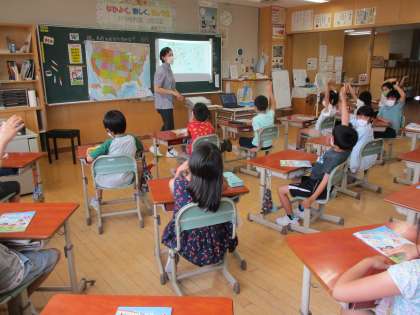 子供たちは楽しみながら学べる外国語が大好きみたいです。授業の最後には「もう終わりなの?」とつぶやいていました。