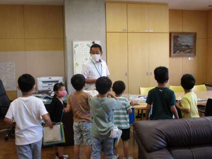 今日は、学校たんけんで「もっと詳しく知りたいな」と思う場所を決めて、初めて子供たちだけでたんけんしました。行く前には、挨拶や言葉遣い、質問の仕方などの練習を行い、教室を元気に出発しました。それぞれの場所で、興味のあるものを見たり、質問をしたりしていました。