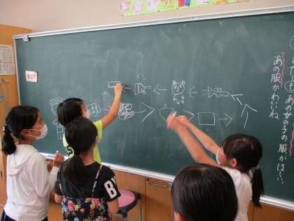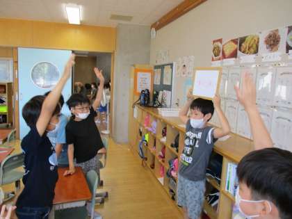 今週から、普通校時になり休み時間も以前のように遊ぶ時間ができました。言葉当てクイズや、絵しりとりなど、子供たちでいろいろな遊びを楽しんでいます。