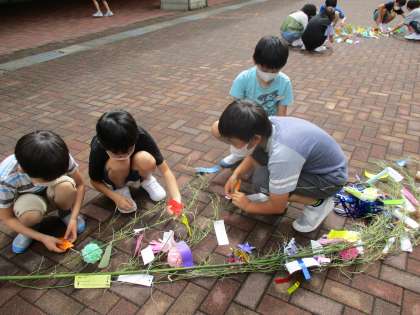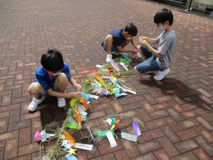 子供たちは、思い思いに願いごとを短冊に書きました。夏の訪れを感じながら、色鮮やかな短冊と飾りで彩りました。
