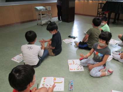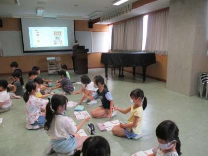 外国語活動の時間にジャンケンをしました。「ロック、シーザー、ペーパー、1.2.3」。勝負を楽しみながら、外国語にも親しみました。