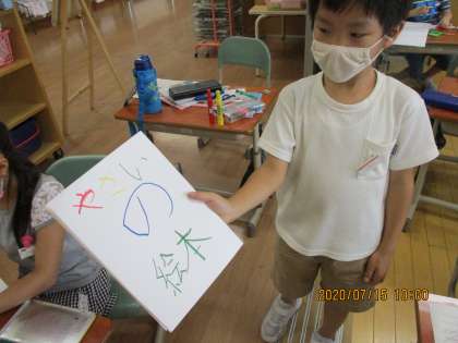 1学期を通して大切に育てた野菜について学習したことや野菜の成長の様子等についてまとめる活動を始めました。表現方法は、絵本や新聞、紙芝居、双六等いろいろ考え、自分で選んで決めました。