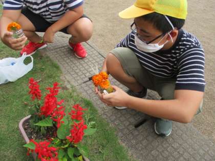 花壇の花が大きく育ってきたので、剪定をしました。春に植えた時には小さく、弱々しかったのに、数ヶ月でここまで大きくなる花に自然の力強さを感じました。