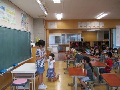 子供たちは、係活動に意欲的に取り組んでいます。図書係は、読書タイムに読み聞かせをしました。読み終わった後には、おもしろかったところ、自分が主人公だったらどうするか、などと感想を述べています。次は何を聞かせてくれるかな。
