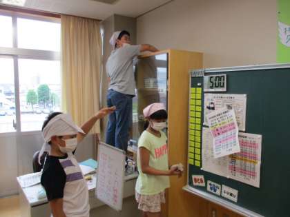 今日は1学期の終業式でした。1学期お世話になった机や下足箱、教室をきれいに掃除しました。