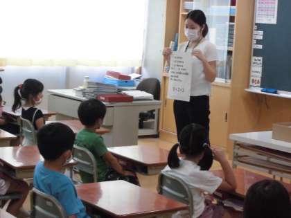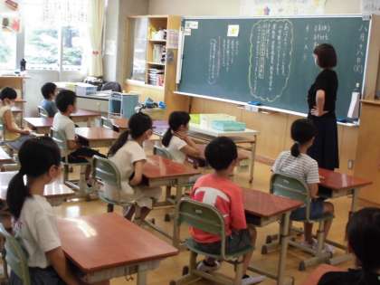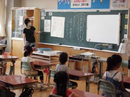 8月18日(火)、第2学期始業式が始まりました。校長先生は、算数の記号を使って「+」は助け合う、「−」は引き寄せる、「×」は声を掛け合う、「÷」は分け合うことだと、思いやりの心について話されました。さらに、計算には順番があるけれども、この『思いやり算』は何から始めても人を笑顔にすることができると話されました。子供たちは、担任の先生と一緒に熱心に話を聞いていました。また、放送から流れる校歌に合わせて、歌詞をかみしめて心の中で歌っていました。まだ、暑い日が続きますが、元気に学校生活を過ごしてほしいと思います。