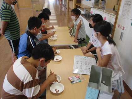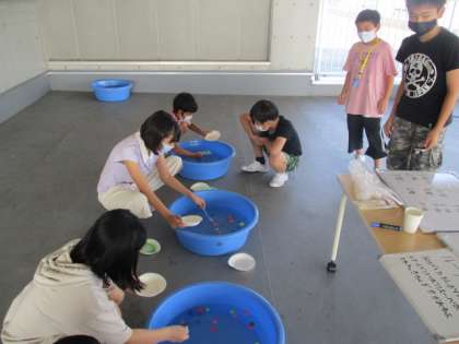 西田納涼祭その1を開催しました。今日は1組がお店、2組がお客さんになりました。射的や豆つかみ、コイン落としなどユニークなお店が並び、楽しいお祭りになりました。来週は立場を変えてもう一度開催する予定です。