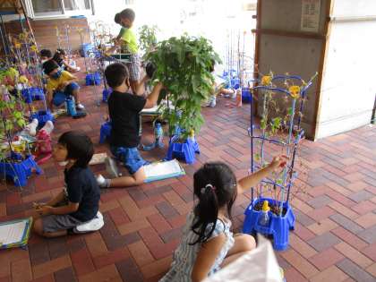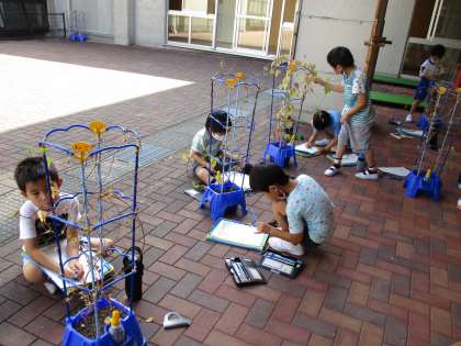 アサガオの実の観察をしました。「これが実なんだ。」「実の中から種が出てきた!」など、驚く様子がたくさん見られました。形や手ざわりを確かめながら、じっくり観察をしました。