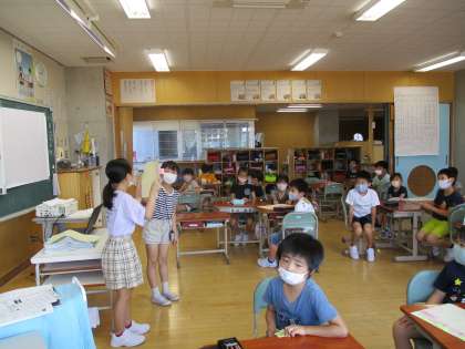 国語科の学習で、山小屋で三日間過ごすなら何をもっていきたいかを話し合いました。班で持っていくことができるのは、五つ。自分たちがしたいことを考えて、友達の意見を尊重しながら話し合い、班によって決めていく活動をしました。最後は教室全体に発表をしました。