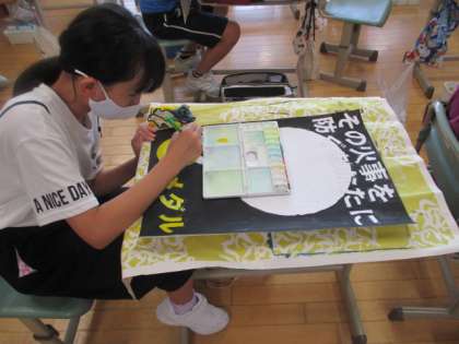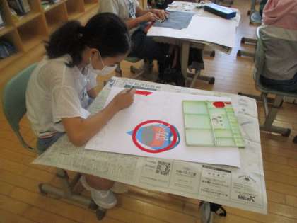 防火ポスターの彩色を始めました。完成したポスターをイメージしながら集中して取り組んでいます。