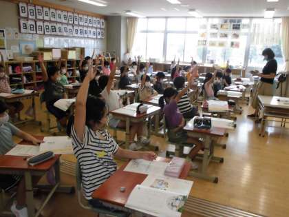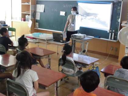 地震の避難訓練をした後、担任の先生と一緒に、地震の怖さを映像で見たり、避難の仕方を確認したりしました。子供たちは、今回の避難訓練を振り返り、安全に避難することの大切さを改めて実感することができました。