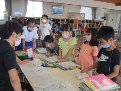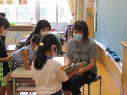 担任の先生方へインタビューに行くと、そこに居合わせた上学年が近付いて、温かいまなざしで見守ってくれたり、声をかけてくれたりしていました。インタビュー後は、どの子も満足そうに、にこにこ笑顔で戻ってきました。