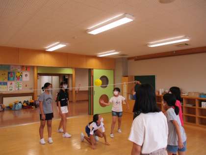 今日は初めてのクラブ活動でした。目当てを考えた後は、室内での風船バレーを楽しみました。チームワークのよさを発揮し、ラリーが続く試合で盛り上がりました。