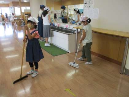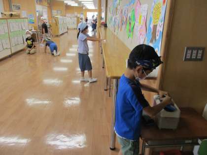 自分たちで使った場所は、自分たちできれいにする。10分の掃除時間ですが、集中して精一杯働く姿が素晴らしいですね。