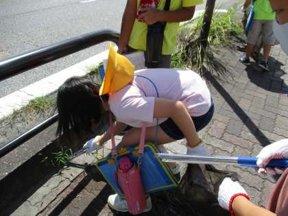 子供たちは、普段何気なく登下校しているコースに、ごみが落ちていることに驚きました。「ごみが少ないと思っていたけど、予想以上にあるなぁ。」「どうしてこんなにごみが落ちているのかな?」と調査することで、いろいろなことに気付きました。
