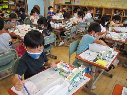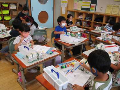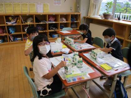 図画工作の時間に、水彩道具の扱い方を学習しました。また、「カラフル色水」の学習で、絵の具を使っていろんな色水を作りました。「混ぜたらきれいな色ができた!」「またやりたい。もっとしたい。」と、色つくりを楽しむことができました。