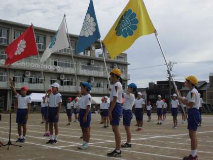 9月24日(木)、さわやかな秋晴れのもと、運動会が行われました。今年の運動会のスローガンは、「心を一つに 〜思いをつなぎ、全力をつくそう〜」です。6年生が運動会を支え、みんなで力を合わせた運動会になりました。
