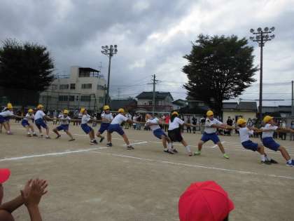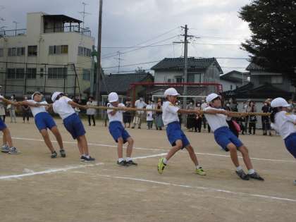 5、6年生が力を合わせて、力一杯綱を引きました。