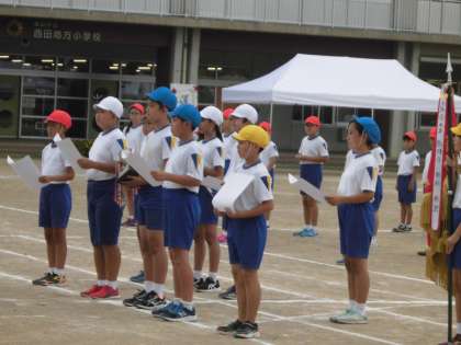 運動会のスローガン通り、子供たちは、心を一つにして全力で競技しました。温かいご声援をありがとうございました。