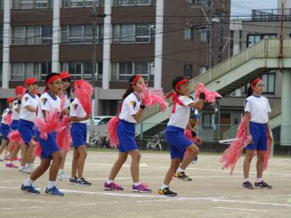 応援練習を重ねていくごとに振り付けの一つ一つがそろうようになり、迫力あふれる隊形移動は見事でした。赤団はアイディア賞を受賞しました。