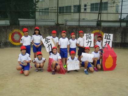 最後に各団そろって集合写真を撮りました。みんな満足そうな笑顔でした。赤団と白団の様子です