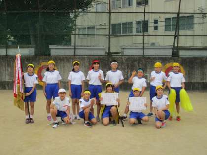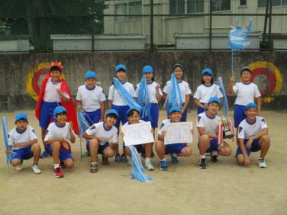 青団と黄団の集合写真です。子供たちからは「いつもは恥ずかしくて違う学年の人に声をかけられないけど、今日はがんばれた」「勝ち負けにこだわらずに楽しめた」「これまでで一番心に残る運動会になった」「友達のいいところをたくさん見つけられた」などの声が聞かれました。この運動会を通して個人の力、集団の力が共に高まったことを非常に嬉しく思います。今後の活動も例年とは違う形になるかもしれませんが、この6年生たちならきっとやり遂げてくれると思います。