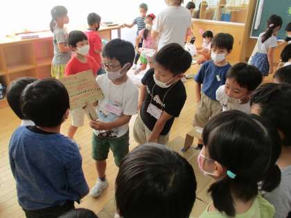 1年生をおもちゃランドに招待しました。「自分たちの作ったおもちゃで、1年生が笑顔になってくれてうれしかった。」という感想が多く聞かれました。今までみんなで学習を進めてきたことが成功につながりました。