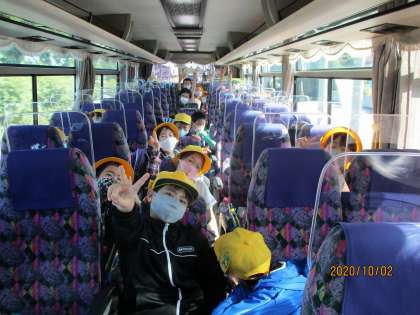 バスの中では、密を避けるために座席を広く取って座りました。久しぶりの校外学習に、ワクワクします!!