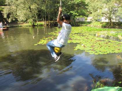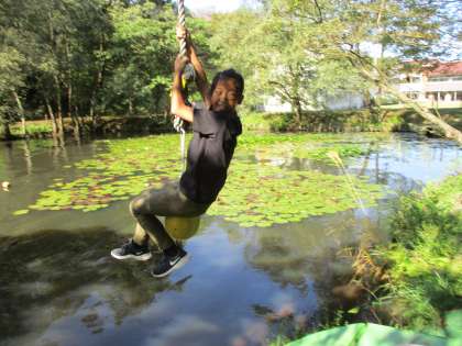 ターザンロープを楽しむ様子です。