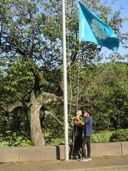 一日の活動もあっという間に終わり、退所式の時間となりました。所長さんに挨拶をいただき、児童の代表が感謝の気持ちを伝えました。校歌に合わせて校旗を下げると、少し寂しい思いも湧いてくるくらい、充実した一日となりました。